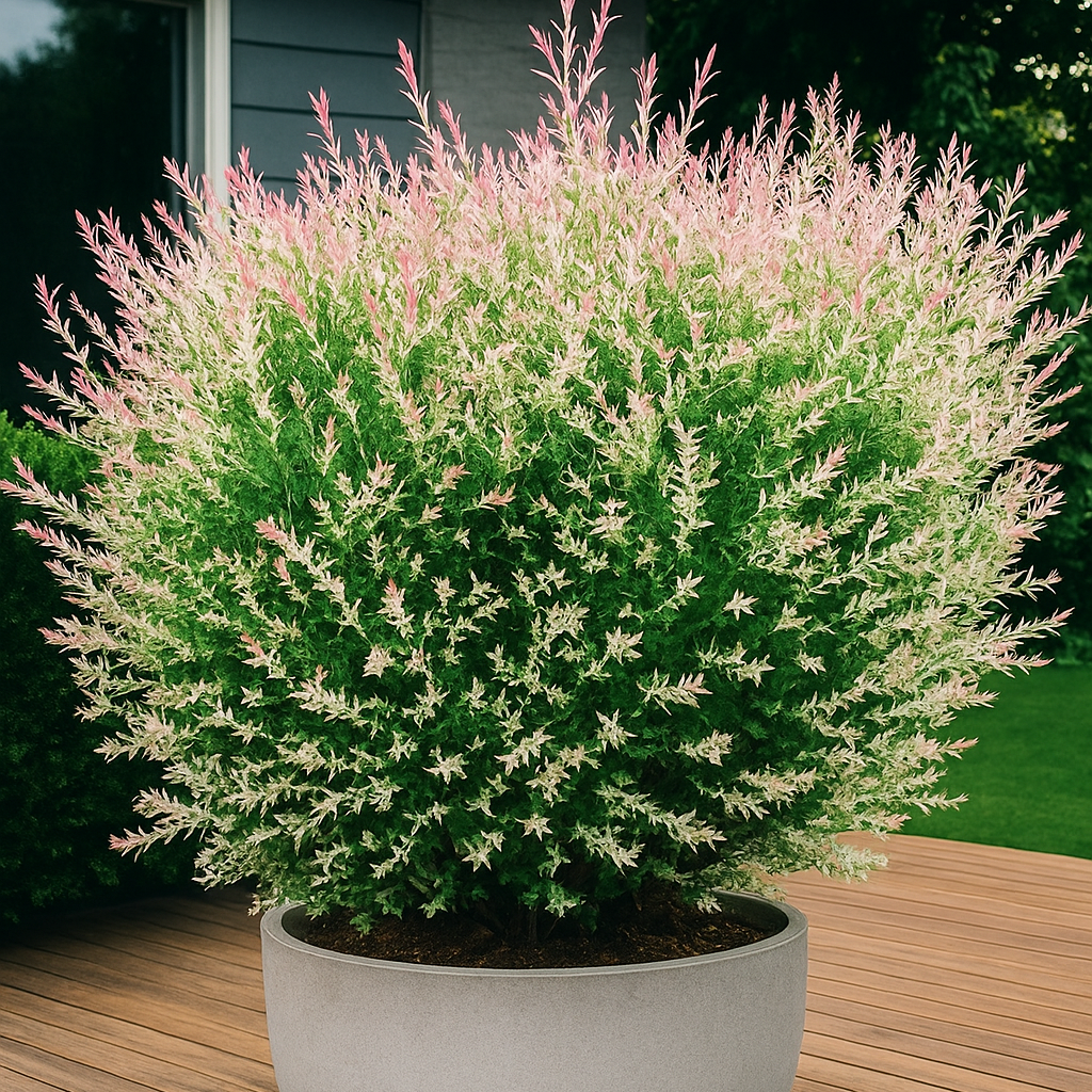 Japansk selje ‘Hakuro-nishiki’ er en av de mest populære prydpilene – kjent for sitt unike fargespill og elegante uttrykk. De nye skuddene springer ut i rosa og hvitt, før bladene får et vakkert mønster i grønt, kremhvit og svakt rosa. Fargene skifter gjennom sesongen, og gir planten et stadig fornyet utseende. Et virkelig blikkfang i enhver hage, på terrasse eller ved inngangsparti.